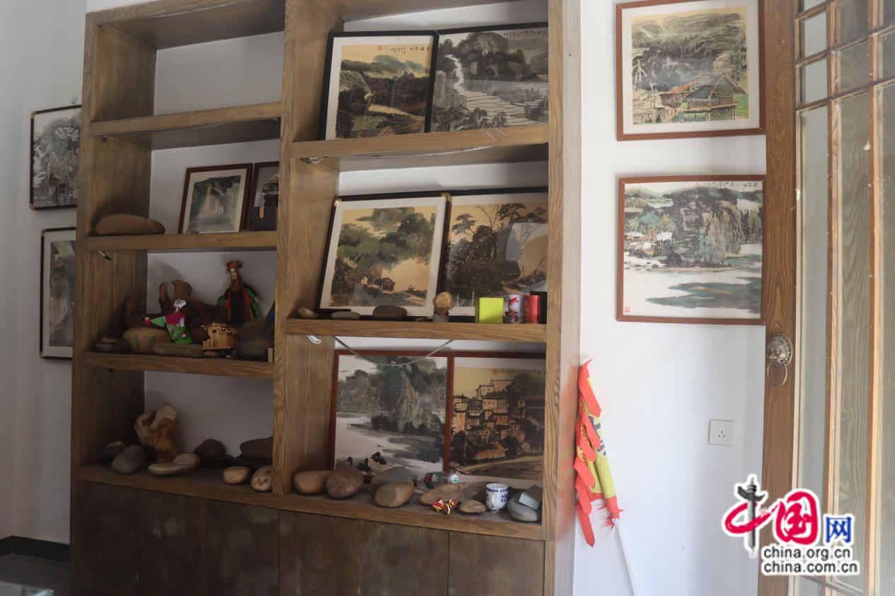 楊必熙所作的山水畫和所展示的奇石。劉潔供圖