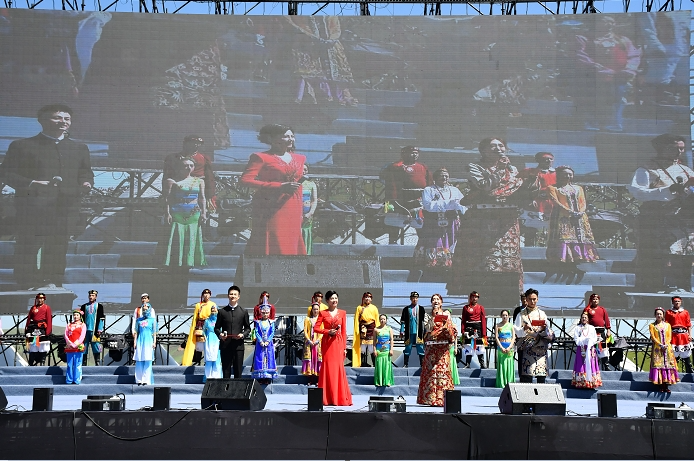 草原兒女在激昂的旋律中共同唱響草原大合唱《我和我的祖國》,感受甘南各族群眾對(duì)祖國的深深眷戀和熱愛。甘南,不僅有自然之美、和諧之美,更有人文之美,大合唱《走向復(fù)興》體現(xiàn)了甘南別具一格的文化底蘊(yùn),展現(xiàn)了甘南是長(zhǎng)江和黃河的精彩邂逅、青藏高原和黃土高原的熱情擁抱、游牧文明和農(nóng)耕文明的美麗碰撞、民俗文化和宗教文化的有機(jī)融合。