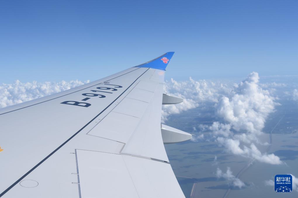 8月29日,編號(hào)為B-919J的南航首架C919國(guó)產(chǎn)大飛機(jī)在從上海飛往廣州途中。新華社記者 田建川 攝