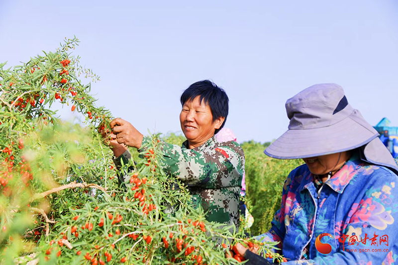當(dāng)?shù)谝豢|晨光穿透薄霧,照耀在玉門市柳河鎮(zhèn)二道溝村的枸杞田上時(shí),只見一望無(wú)際的枸杞林郁郁蔥蔥,綠葉間點(diǎn)綴著密密麻麻的枸杞果。這些果實(shí)色澤鮮艷,飽滿圓潤(rùn),散發(fā)著誘人的光澤。農(nóng)戶們穿梭其間,手持籃子或袋子,忙碌而有序地進(jìn)行采摘工作。他們的臉上洋溢著豐收的喜悅,歡聲笑語(yǔ)在田間地頭回蕩,構(gòu)成了一幅幅生動(dòng)和諧的豐收畫卷。