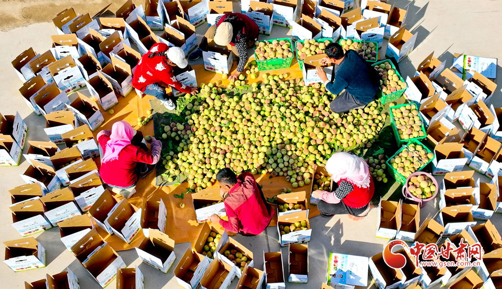 10月24日,在張掖市甘州區(qū)長安鎮(zhèn)萬通果蔬種植專業(yè)合作社“甘泉雪桃”種植基地大棚內(nèi),種植戶正在為甘肅蘭州和青海西寧的客戶采摘裝運“甘泉雪桃”。