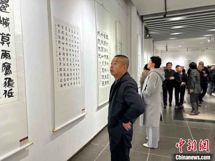 圖為展覽吸引書法愛好者觀賞。楊娜 攝