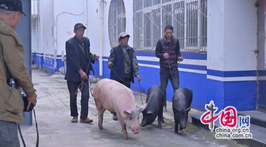 2024年11月20日,彝族老鄉(xiāng)在站臺(tái)上接豬。原波 攝