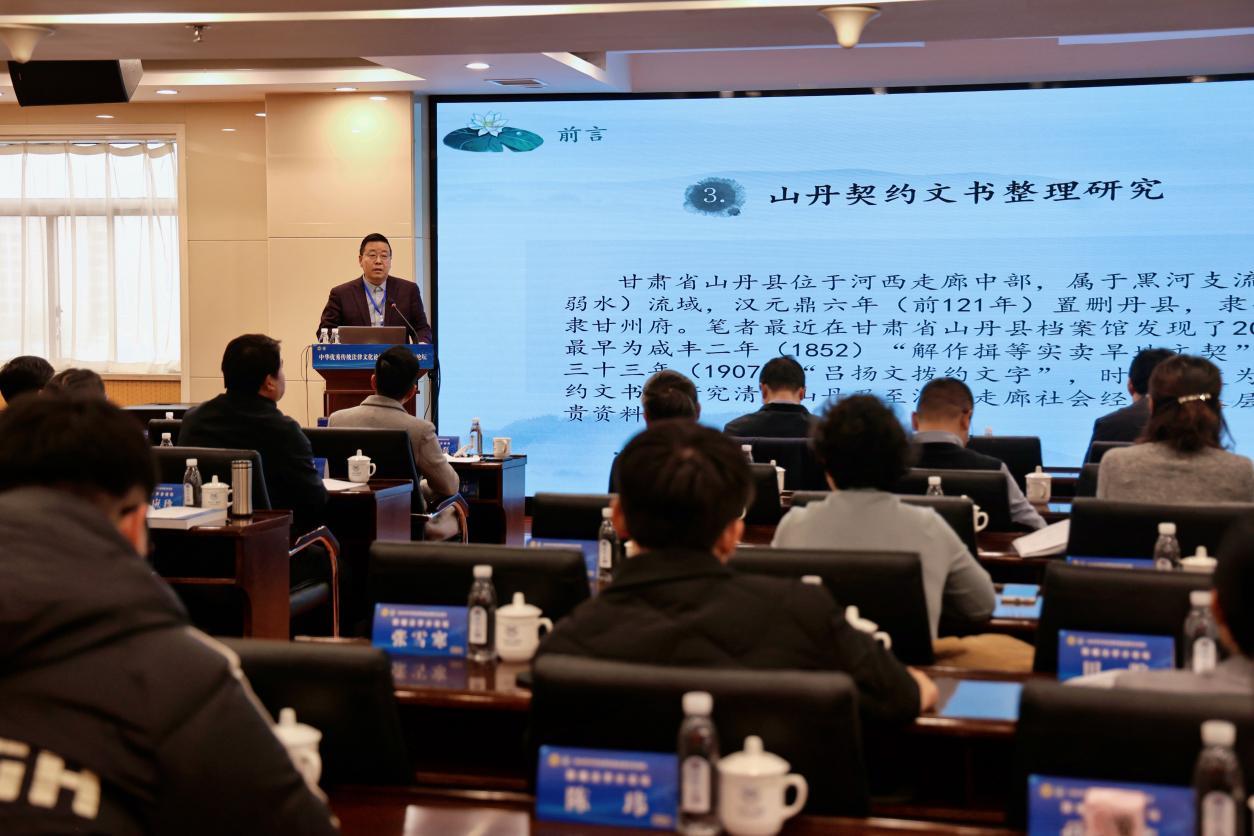 此外,河西學(xué)院歷史文化與旅游學(xué)院院長(zhǎng)謝繼忠教授也在論壇上作了主旨報(bào)告,他通過新發(fā)現(xiàn)的20份山丹契約文書,深入剖析了清末甘肅山丹鄉(xiāng)村社會(huì)治理的特點(diǎn)及其啟示,為認(rèn)識(shí)傳統(tǒng)社會(huì)整體面貌及其特點(diǎn)提供了新史料、新視角。