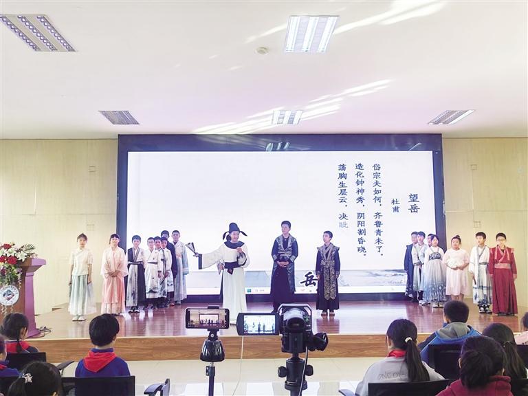 在講述杜甫生平的環(huán)節(jié),教師們慷慨激昂的語言,配合著精心設(shè)計(jì)的場(chǎng)景和道具,生動(dòng)地展現(xiàn)了詩(shī)人從步入仕途、卷入官場(chǎng)糾葛、流離失所直至孤舟病逝的坎坷歷程。學(xué)生們也被這種氛圍深深感染,他們專注地聽著,眼中閃爍著對(duì)詩(shī)人命運(yùn)的同情和對(duì)詩(shī)人精神的敬仰。