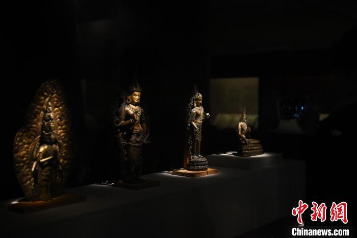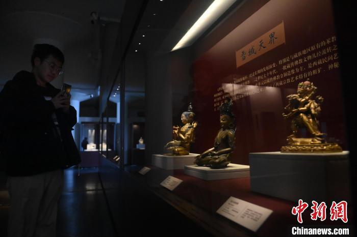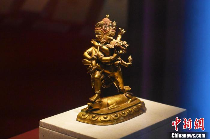 11月28日,甘肅省敦煌市,敦煌研究院敦煌石窟文物保護(hù)研究陳列中心《披沙揀金——敦煌研究院館藏文物擷英展》中的勝樂(lè)金剛像。該展由敦煌研究院主辦,2024年下半年煥新布展,展出了不同類型館藏文物,通過(guò)這些文物蘊(yùn)含的豐富歷史信息,展現(xiàn)了敦煌文化的多元與包容,勾勒不同文明偕行共進(jìn)的歷史脈絡(luò)。中新社記者 李亞龍 攝