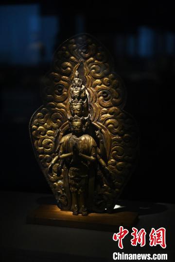 11月28日,甘肅省敦煌市,敦煌研究院敦煌石窟文物保護(hù)研究陳列中心《披沙揀金——敦煌研究院館藏文物擷英展》中的十一面觀音像。該展由敦煌研究院主辦,2024年下半年煥新布展,展出了不同類型館藏文物,通過(guò)這些文物蘊(yùn)含的豐富歷史信息,展現(xiàn)了敦煌文化的多元與包容,勾勒不同文明偕行共進(jìn)的歷史脈絡(luò)。中新社記者 李亞龍 攝