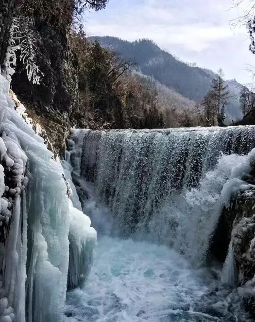 大峪溝的明珠——冰湖,已經結成了厚厚的冰層,冰面上布滿了細碎的雪花,仿佛是一幅精美的畫卷。站在湖邊,可以清晰地看到冰層下的水流在緩緩涌動,仿佛在訴說著千年的故事。偶爾,有幾只水鳥掠過湖面,留下一串串歡快的鳴叫聲,為這寂靜的冰湖增添了幾分生機。