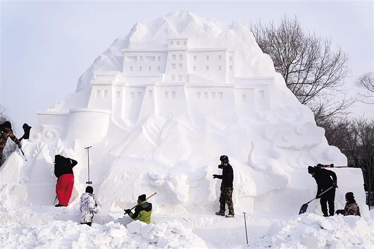從滑雪場激情馳騁之后,便前往棲云田園小鎮(zhèn)。這里有著豐富多彩的冰雪活動,雪雕區(qū)里形態(tài)各異、栩栩如生的雪雕作品令人嘆為觀止。