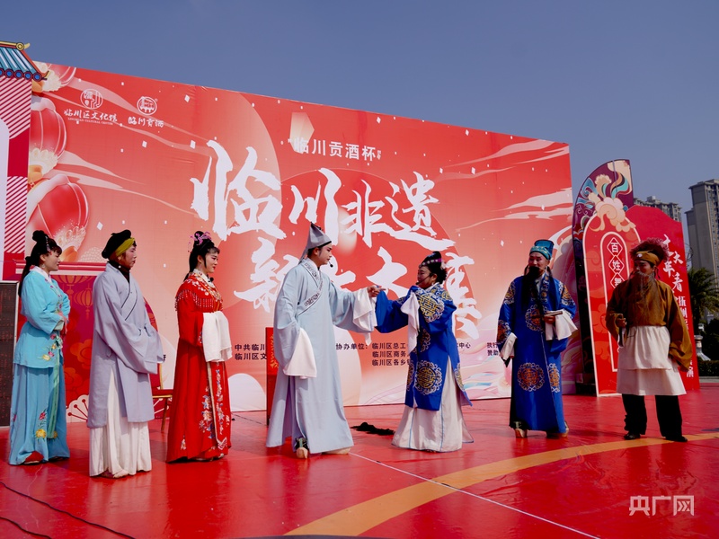 演員們身著艷麗的戲服,先后表演了《王媽媽愛雞》《游園驚夢》等節(jié)目。撫州采茶戲是江西臨川傳統(tǒng)戲曲文化的重要組成部分之一,是在明代茶燈戲的基礎(chǔ)上,吸取當?shù)孛窀栊≌{(diào)發(fā)展而成,據(jù)《臨川縣志》記載,迄今已有四百余年的歷史。