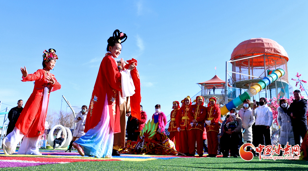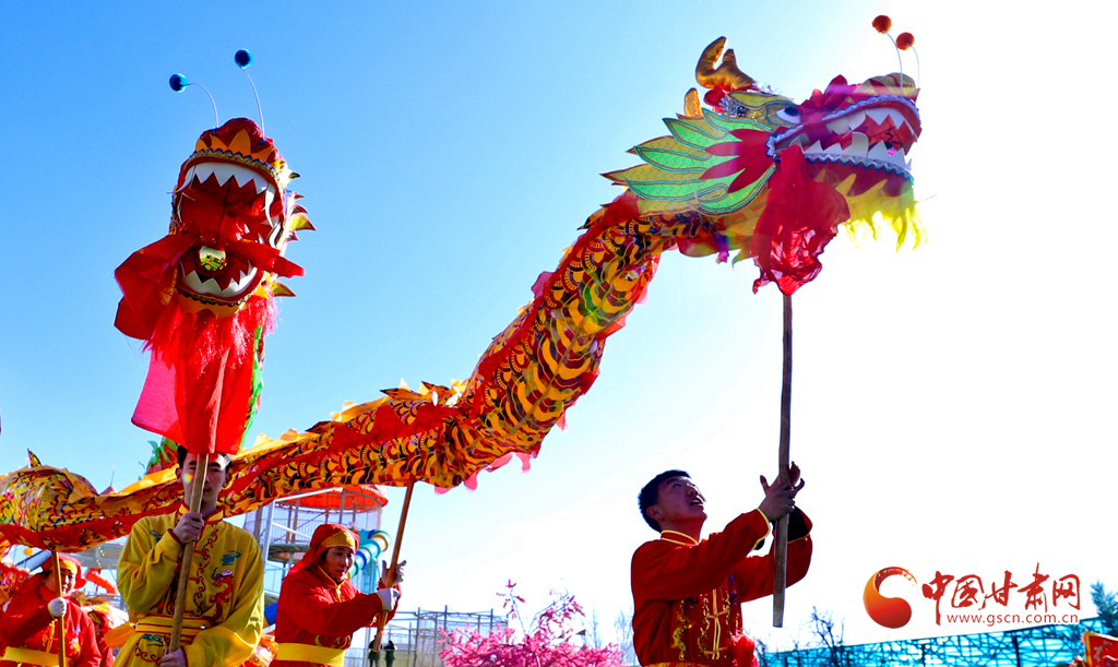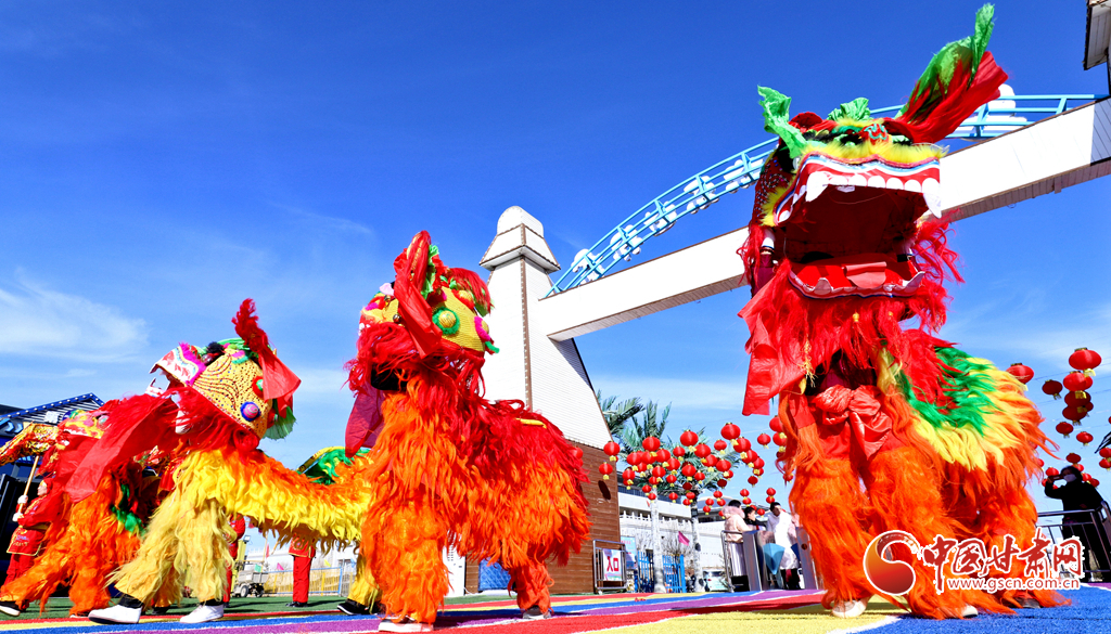 春節(jié)期間,甘肅省張掖市甘州區(qū)一游樂園內熱鬧非凡,張掖云海民俗文化藝術團的演員們舞起祥龍雄獅、敲起威風鑼鼓,讓市民和游客在傳統(tǒng)民俗文化的氛圍中歡度春節(jié)假期。