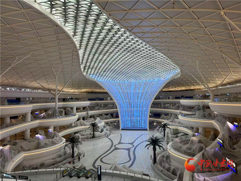目前,口岸查驗(yàn)設(shè)施基本完成;綜合交通中心工程土建安裝、裝飾裝修工程全部完成,容納3520個(gè)停車位;信息大樓工程核心機(jī)房設(shè)備、弱電系統(tǒng)、裝修全部完成;機(jī)場(chǎng)業(yè)務(wù)用房、安檢護(hù)衛(wèi)用房、值班宿舍、國際國內(nèi)貨運(yùn)庫等附屬工程全面建成;綜合管廊、場(chǎng)區(qū)道路全線貫通;如意廣場(chǎng)、主進(jìn)場(chǎng)道路等場(chǎng)區(qū)綠化苗木基本栽植完成。