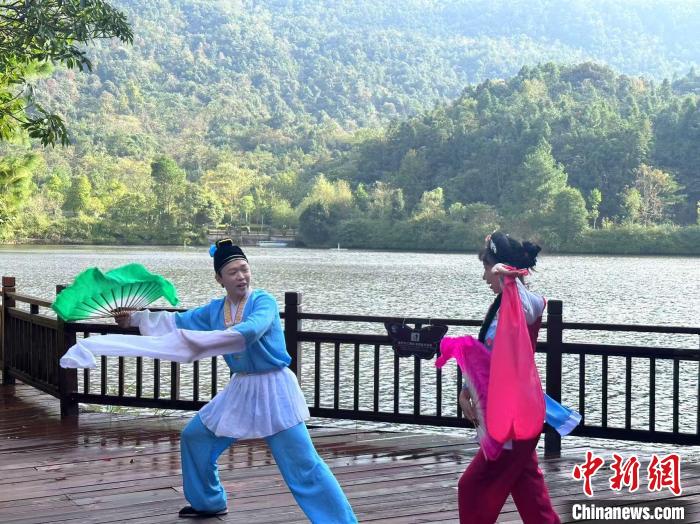 2024年11月,贛南采茶戲演員在江西贛州安遠(yuǎn)縣三百山景區(qū)表演采茶戲。(資料圖)安遠(yuǎn)縣采茶戲保護(hù)傳承中心 供圖