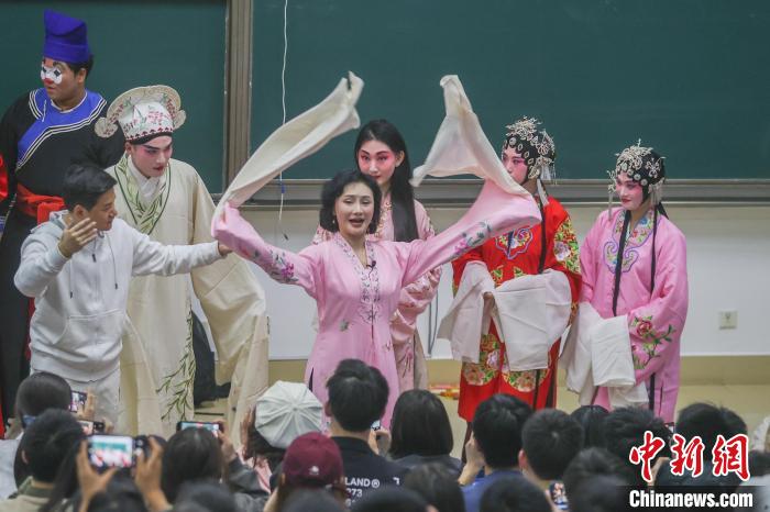 2024年3月,江西南昌,南昌大學(xué)贛劇藝術(shù)鑒賞課堂上,國(guó)家級(jí)非物質(zhì)文化遺產(chǎn)代表性項(xiàng)目“贛劇”代表性傳承人陳俐正在給學(xué)生上課。(資料圖)劉力鑫 攝