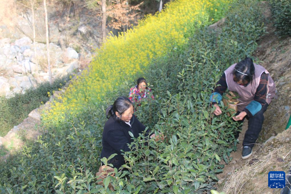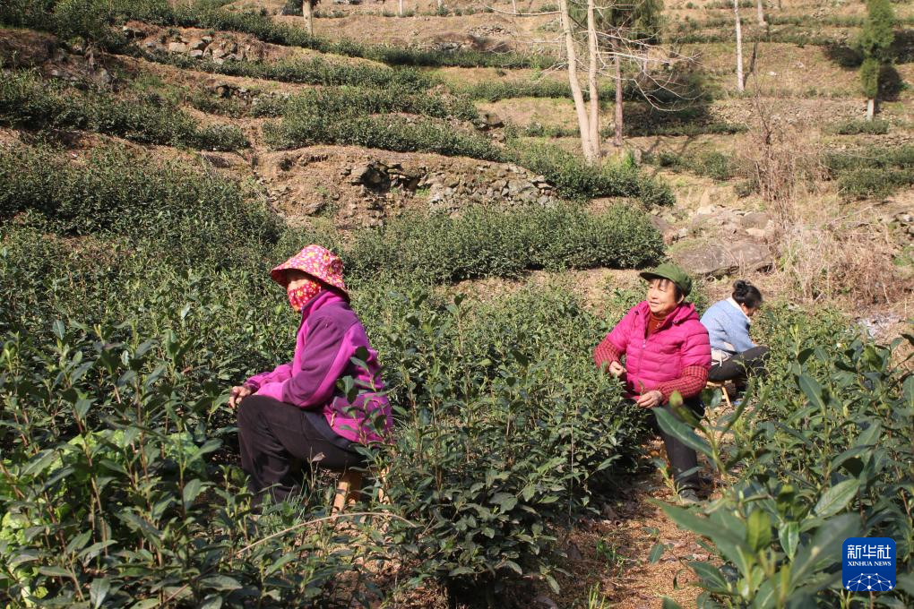 在文縣中廟鎮(zhèn)茶園村,村民正在采摘茶葉。新華社記者李杰 攝