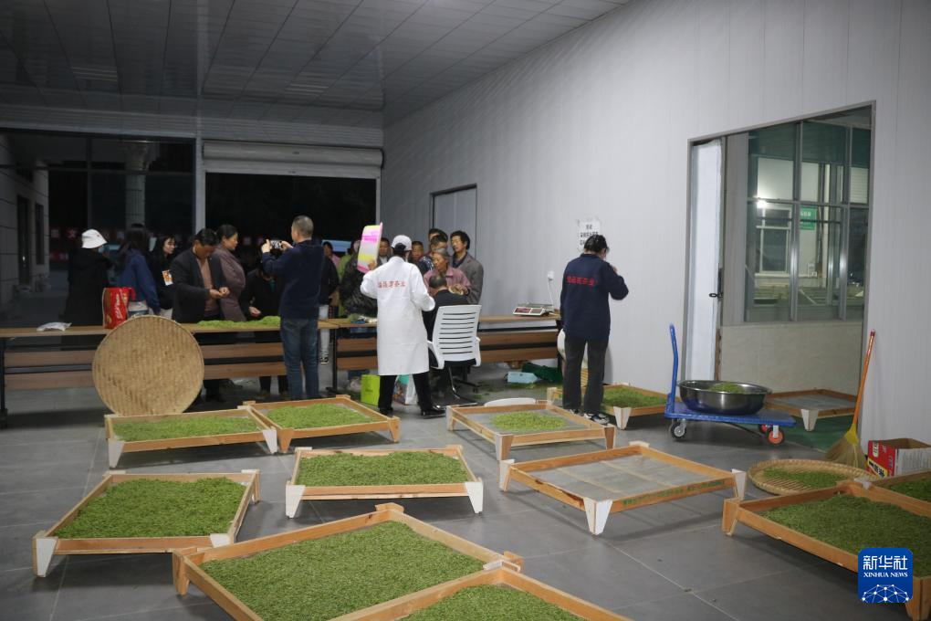 中廟鎮(zhèn)溢品茗茶葉加工廠收購當(dāng)?shù)夭柁r(nóng)茶葉鮮葉。新華社記者李杰 攝