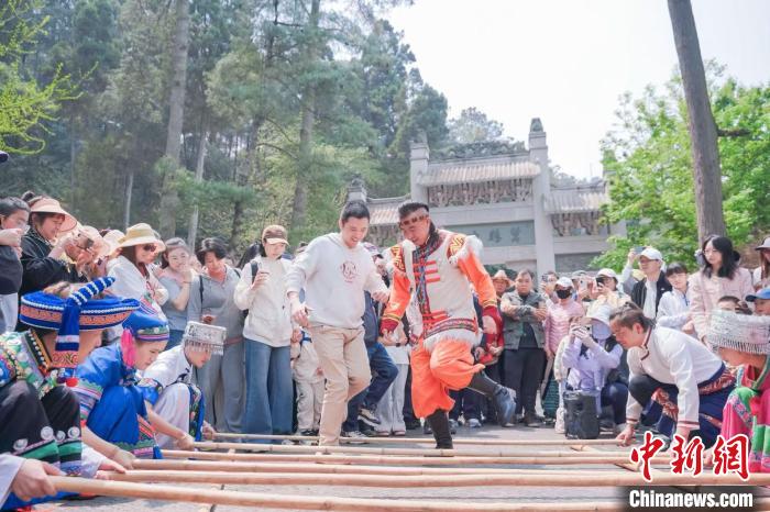 3月30日,市民和游客在活動(dòng)現(xiàn)場(chǎng)跳竹竿舞。 主辦方 供圖