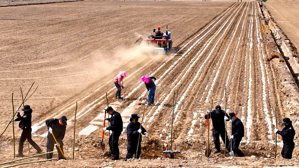 4月10日,張掖市甘州區(qū)開展2025年春季義務(wù)植樹暨農(nóng)田防護(hù)林建設(shè)活動。1300多名干部職工和志愿者們共同參與,栽植新疆楊、河北楊、梨等鄉(xiāng)土樹種1.2萬株,致力于建成長18公里,寬3米的高標(biāo)準(zhǔn)農(nóng)田格化防護(hù)林網(wǎng),將覆蓋保護(hù)7846畝農(nóng)田。