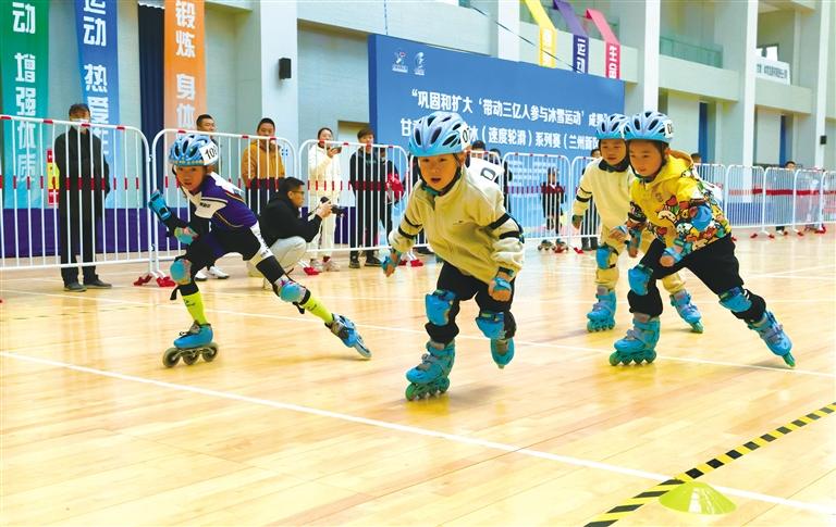 4月12日,“鞏固和擴(kuò)大‘帶動(dòng)三億人參與冰雪運(yùn)動(dòng)’成果”甘肅省速度滑冰(速度輪滑)系列賽(蘭州新區(qū)站)在甘肅省體育館開(kāi)賽。