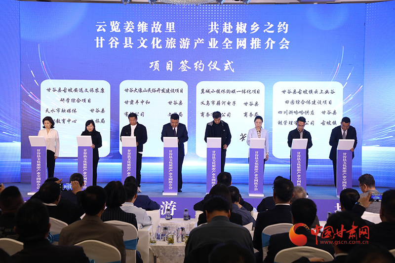 活動(dòng)中,甘谷縣還為文化旅游傳播大使頒發(fā)了聘書,希望他們能夠發(fā)揮自身優(yōu)勢,宣傳推介甘谷文旅。同時(shí),大會(huì)還舉行了項(xiàng)目簽約儀式,共簽約4個(gè)項(xiàng)目,涉及田園綜合體建設(shè)、文旅農(nóng)康研學(xué)綜合等領(lǐng)域。這些項(xiàng)目的成功簽約,為甘谷文旅產(chǎn)業(yè)發(fā)展注入了新的動(dòng)力。