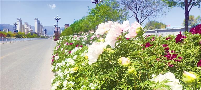 道路旁牡丹花爭(zhēng)相開(kāi)放