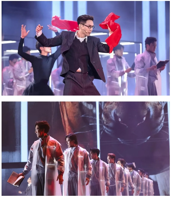 該劇最大的亮點(diǎn)在于創(chuàng)新性藝術(shù)融合,將非遺、科技、禪意、潮流、AI融入先鋒音樂(lè)話劇,打破傳統(tǒng)觀演模式和傳統(tǒng)舞臺(tái)結(jié)構(gòu),巧妙植入演唱會(huì)、音樂(lè)劇、話劇、舞劇甚至是電影多種藝術(shù)表現(xiàn)形式,通過(guò)人工智能、影視化、動(dòng)畫(huà)真人融合等最新科技賦能舞臺(tái),實(shí)現(xiàn)“戲劇+影視+Live”多種藝術(shù)場(chǎng)域的融合,“創(chuàng)造”了既現(xiàn)代又滿載中國(guó)審美的“敦煌”空間,讓觀眾沉浸體驗(yàn)敦煌文化的輝煌與魅力。