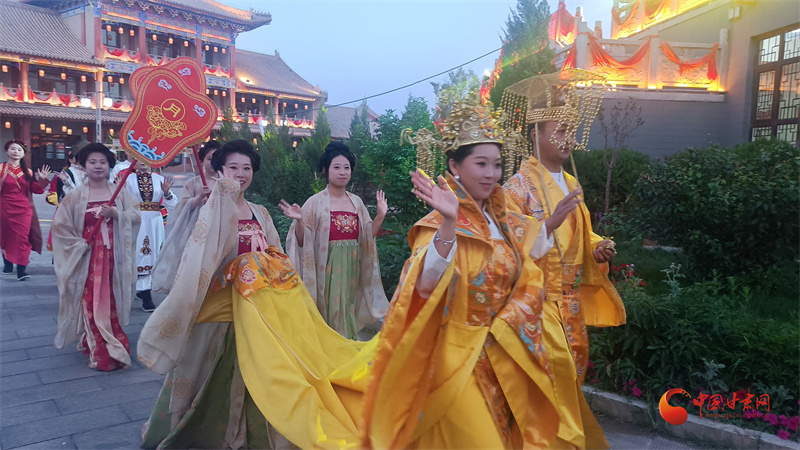 今夏,甘州府城將文旅融合的魅力展現(xiàn)得淋漓盡致。一場(chǎng)場(chǎng)精彩絕倫的活動(dòng),如同一幅幅絢麗多彩的畫卷,在府城徐徐展開。每晚,大型實(shí)景演出《隋煬帝萬國巡游》震撼上演,演員們身著華麗的古裝,在燈光與音樂的烘托下,重現(xiàn)了絲路盛景。讓觀眾仿佛置身于千年之前,親眼目睹了隋煬帝的威嚴(yán)與絲路的繁華。