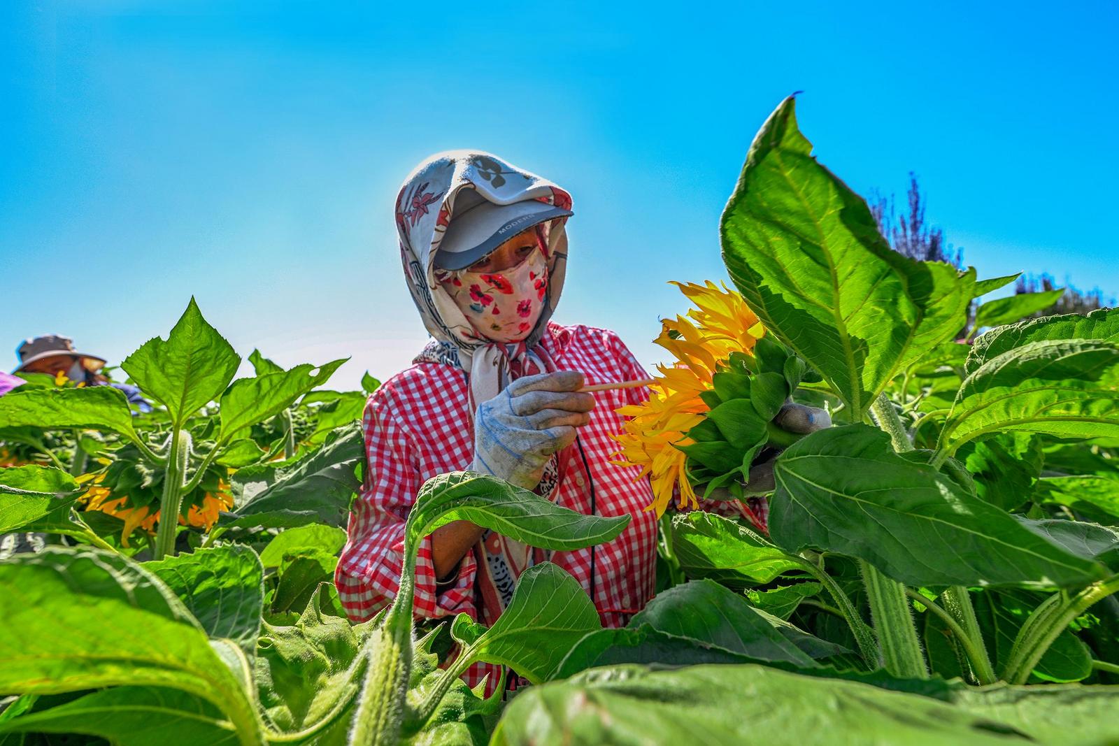 中國甘肅網(wǎng)7月14日訊 據(jù)嘉峪關(guān)日報報道(融媒體中心記者 李巍 攝)近日,嘉峪關(guān)市新城鎮(zhèn)野麻灣村“千畝”制種向日葵迎來盛花期,朵朵花盤匯聚成金色花海,放眼望去,與雪山相融、與藍天相接,如詩如畫,美不勝收。