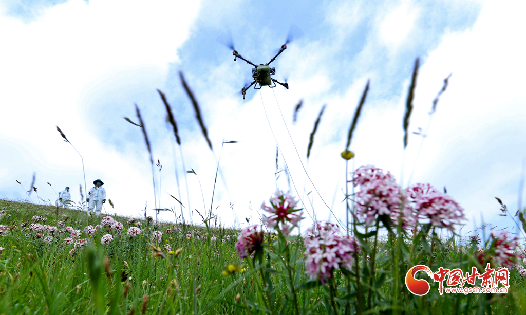 盛夏時節(jié),位于張掖市肅南裕固族自治縣的皇城夏日塔拉草原、康樂賽汗塔拉草原,宛如一塊巨大的綠色絨毯鋪向天際,滿目翠綠,令人心醉神迷。然而,此時也正是草原上狼毒花毒害草盛放、蝗蟲繁殖的高峰期。連日來,肅南縣林草專業(yè)技術(shù)人員帶領(lǐng)2000多牧民,抓住毒害草開花、蝗蟲繁殖最快,也是清除滅殺的最佳時機,在“三北”工程六期160多萬畝廣袤的草原上,打響了以“蟲害防治+害草治理+噴施葉面+播撒草籽的”為核心的“三北”工程林草濕荒一體化保護修復(fù)攻堅戰(zhàn)。