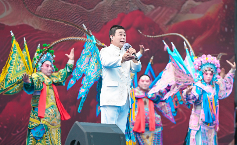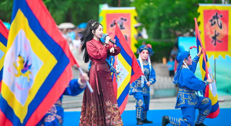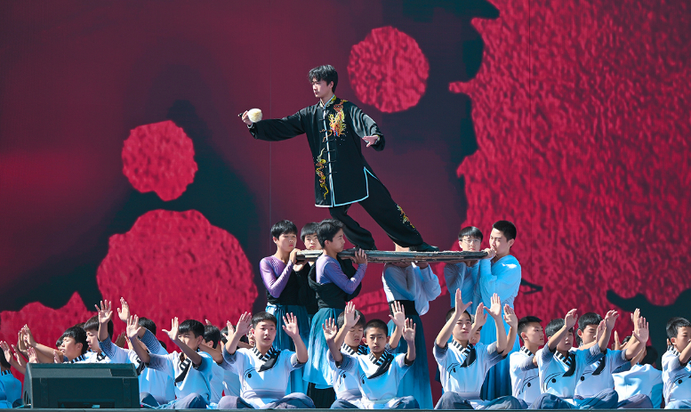 活動(dòng)伊始,開場(chǎng)片《歡迎乘坐崆峒號(hào)》以“環(huán)西部火車游·崆峒號(hào)”平?jīng)雎糜螌A袨殪`感,通過(guò)跨時(shí)空對(duì)話串聯(lián)崆峒山古今脈絡(luò),拉開活動(dòng)序幕?,F(xiàn)場(chǎng),街舞與崆峒武術(shù)團(tuán)體合作的《武韻崆峒》展現(xiàn)武術(shù)與現(xiàn)代肢體藝術(shù)新生機(jī);笛子演奏與武術(shù)冠軍聯(lián)袂呈現(xiàn)的《崆音劍影》打造“可聽的武術(shù)”沉浸式體驗(yàn);30人陣容的江蘇武協(xié)女子太極拳團(tuán)體演繹《鶴起崆峒》,詮釋武術(shù)新功用;國(guó)風(fēng)歌手與秦腔表演藝術(shù)家合作的《秦韻長(zhǎng)歌》,展現(xiàn)“武戲同源”的多元魅力。