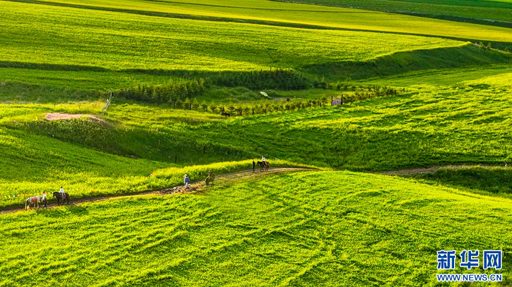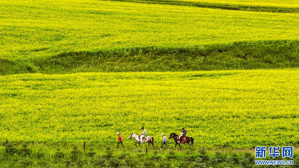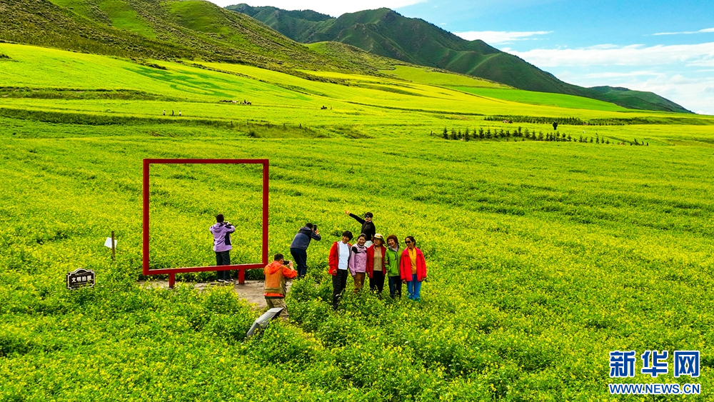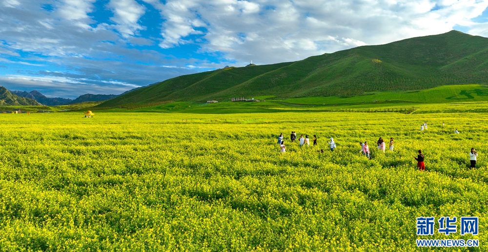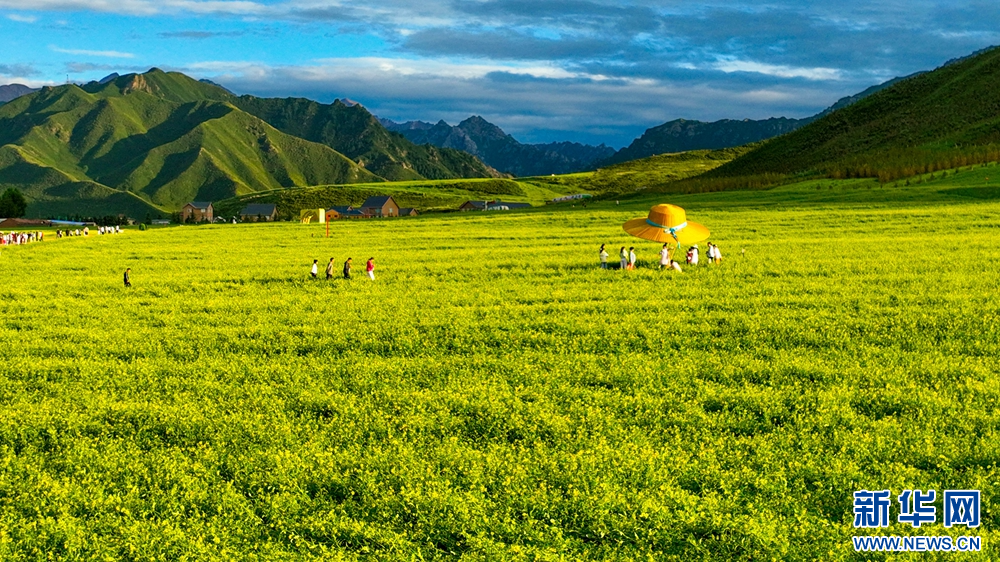 連日來(lái),位于祁連山下的甘肅省張掖市民樂縣扁都口景區(qū)萬(wàn)畝油菜進(jìn)入盛花期。金黃的油菜花海與草原綠野相連,空氣中彌漫的淡淡花香,醞釀山川,醉了游人。新華網(wǎng)發(fā)(王將 攝)