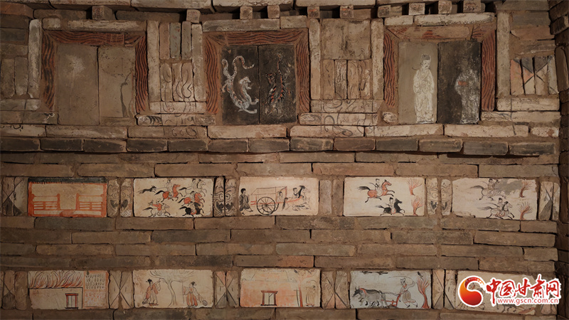 據(jù)考證,這批磚畫年代鎖定為公元3世紀(jì)中葉至4世紀(jì)初,以“一磚一畫”的極簡(jiǎn)構(gòu)圖,將河西走廊古民居、農(nóng)牧、宴樂(lè)、神話與升仙想象封存至今,被譽(yù)為“可移動(dòng)的地下壁畫館”。