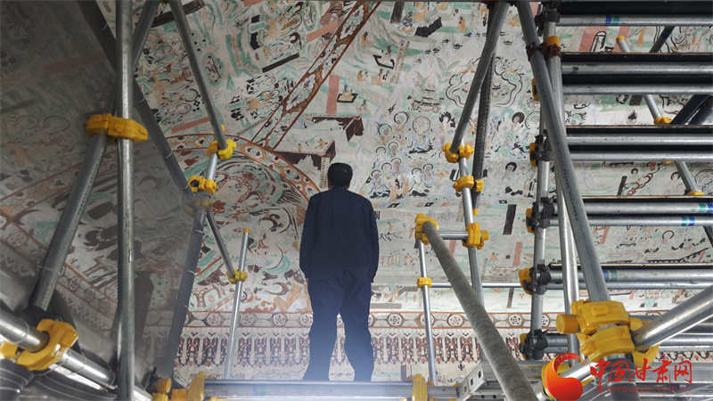 10月31日,由中央網(wǎng)信辦網(wǎng)絡(luò)傳播局、國家文物局政策法規(guī)司指導(dǎo),中國互聯(lián)網(wǎng)發(fā)展基金會特別支持,甘肅省委網(wǎng)信辦、省文物局主辦,張掖、嘉峪關(guān)、酒泉市委網(wǎng)信辦與敦煌研究院、中國甘肅網(wǎng)、鳳凰網(wǎng)甘肅頻道共同承辦的“何以中國|壁畫里的中國·當(dāng)AI遇見小飛天”網(wǎng)絡(luò)主題宣傳活動走進敦煌研究院,采訪在莫高窟修壁畫的青年修復(fù)師唐青松。