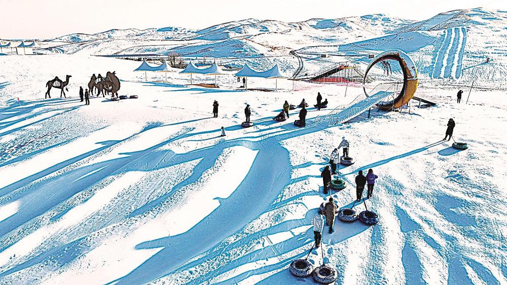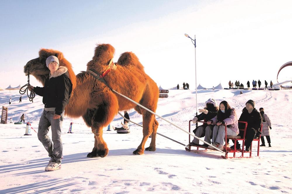 連日來(lái),眾多游客在張掖國(guó)家沙漠體育公園冰雪嘉年華體驗(yàn)冰雪樂趣,冰雪滑道、碰碰球、雪地摩托車、駱駝雪車等多樣的冰雪活動(dòng)為市民游客獻(xiàn)上冬日文旅盛宴。 李自海 攝