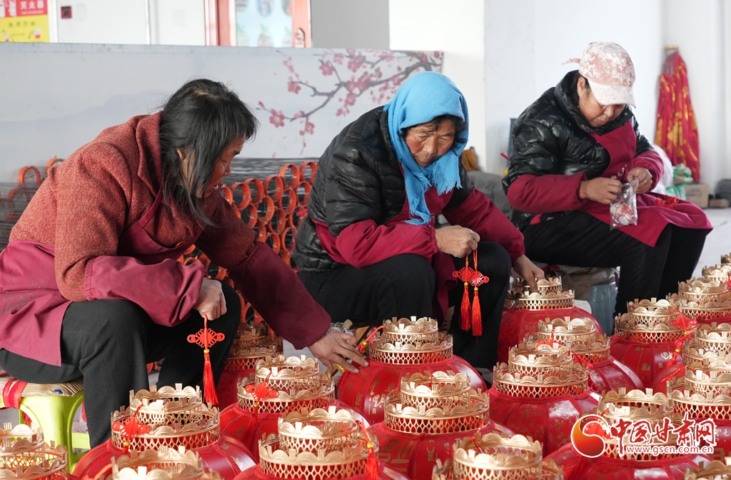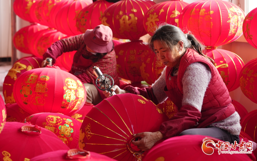 1月13日,莊浪縣宮燈產(chǎn)業(yè)園內(nèi),工人們正忙著制作各式燈籠。隨著春節(jié)臨近,燈籠訂單大幅增加,當(dāng)?shù)厣a(chǎn)企業(yè)正加班加點,趕制供應(yīng)節(jié)日市場的大紅燈籠。目前主要生產(chǎn)紅植絨燈籠、仿羊皮燈籠、七彩走馬轉(zhuǎn)燈、鐵口緞面燈籠等二十多個品種,產(chǎn)品暢銷甘肅、陜西、四川、寧夏、青海等多個省區(qū)。