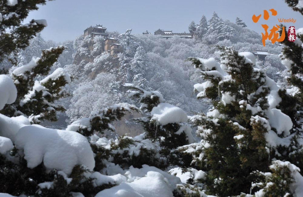 雪,為“西來(lái)第一山”披上了一襲亙古的素衣。舉目望去,朱紅的宮墻、青黑的瓦當(dāng),在白雪的映襯下,色彩格外鮮明莊重。