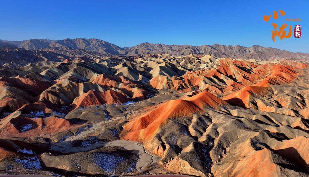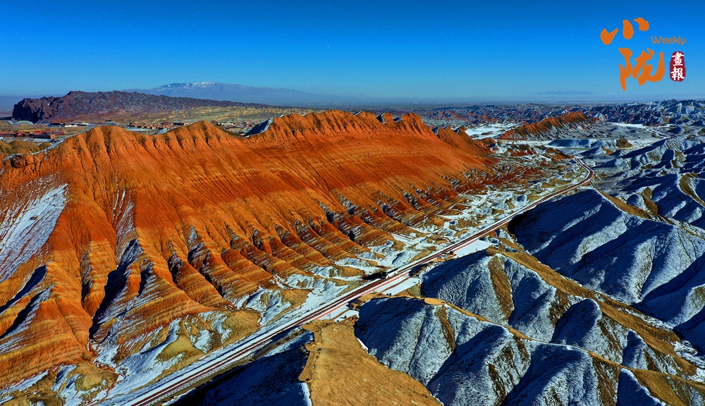 一場(chǎng)春雪后,臨澤七彩丹霞褪去了往日的張揚(yáng),化身為一幅“半是火焰、半是海”的水墨丹青長卷。