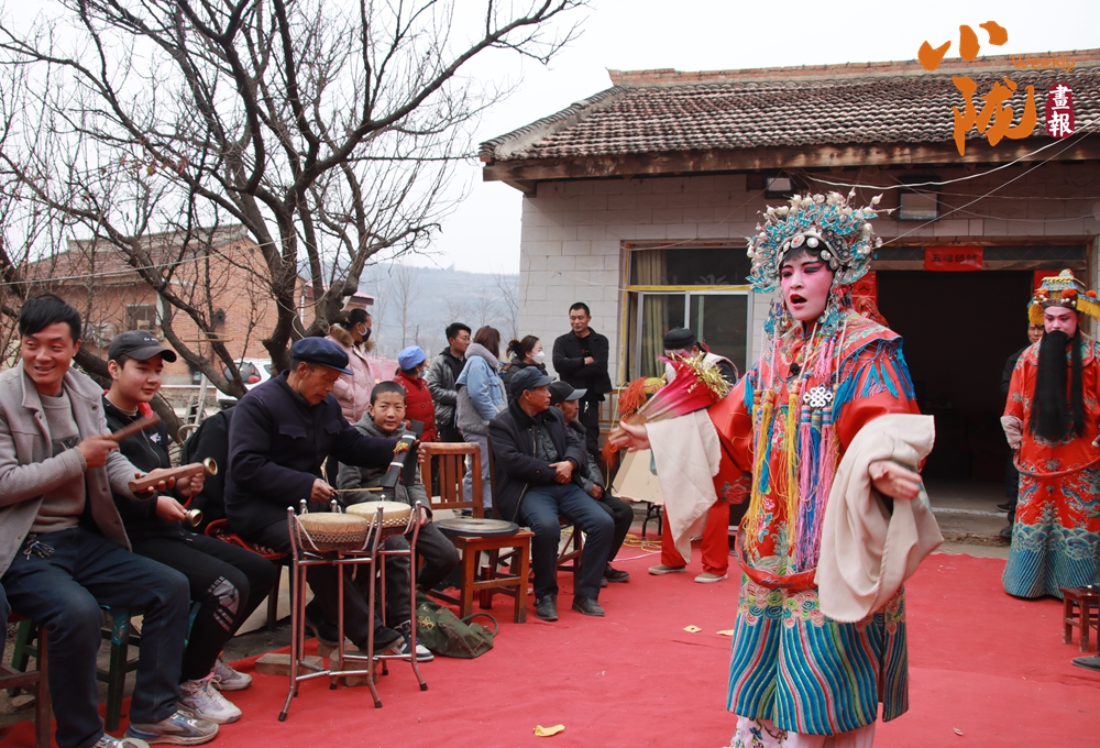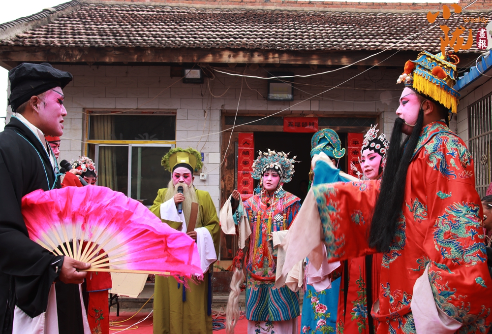 民居門口的舞臺(tái)上,多位扮相精致的演員依次亮相,或持扇或執(zhí)巾,唱腔婉轉(zhuǎn)、身段靈動(dòng)。臺(tái)下村民圍得水泄不通,不少人舉著手機(jī)定格精彩瞬間,伴奏的鑼鼓弦樂(lè)聲里,滿是濃郁的鄉(xiāng)土氣息。