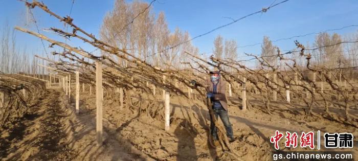 圖為敦煌市陽(yáng)關(guān)鎮(zhèn)萬(wàn)畝葡萄枝蔓出土上架。敦煌市委宣傳部供圖